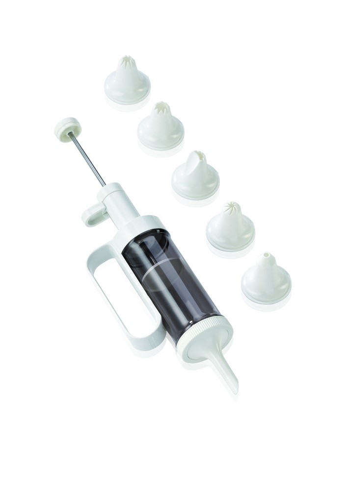 Excellent for decorating desserts and cakes with whipped cream, creams, for filling donuts with jam and for decorating sandwiches, toasts and lined dishes with spreads, pâtés, soft cheese, etc., it contains 6 decorative nozzles.